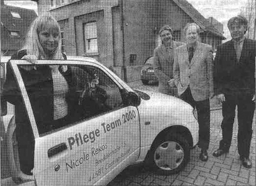 Als ein besonders gelungenes Beispiel für eine Neugründung würdigte Hartmut Hauschildt gestern das „REWA Pflegeteam 2000“ an der an der Breddestraße 15. Vor einem Jahr hatte die examinierte Krankenschwester und Altenpflegerin Nicole Rekos das Seminar im Erin-Park besucht. Wenig später eröffnete sie an der Breddestraße 15 ihren eigenen Ambulanten Pflegedienst. „Der Kurs hat mir wichtige, vor allem rechtliche Hilfestellungen gegeben“, so die 31-Jährige, die sich trotz der großen Konkurrenz aus dem Pflegemarkt prächtig behauptet und mittlerweile neun Teilzeit-Mitarbeiter beschäftigt.“